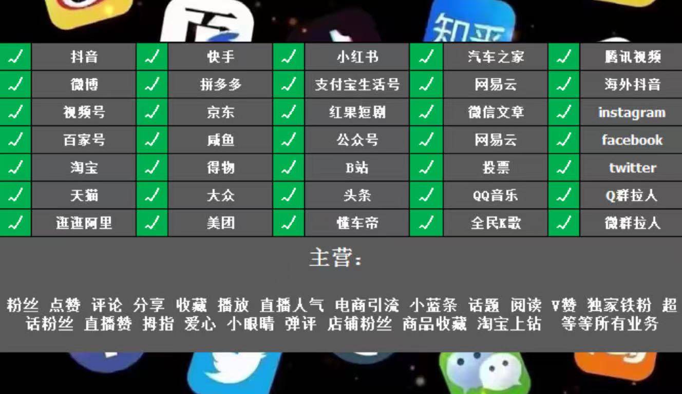 抖音涨粉/直播人气/收藏/评论等